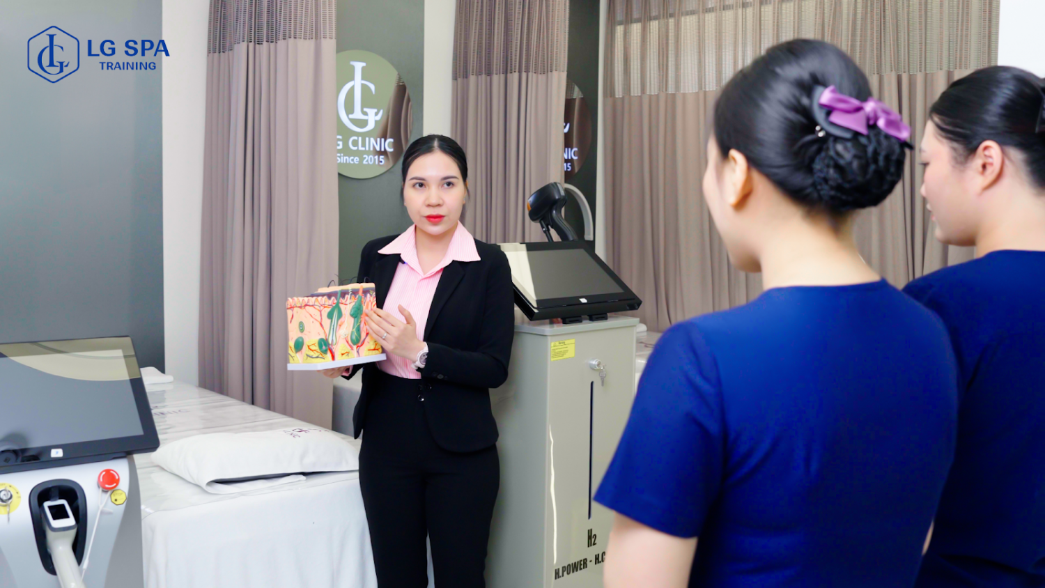 Ngoài ra, tại LG Spa Training Center áp dụng mô hình lớp học nhỏ (tối đa 12 học viên/lớp), cho phép giảng viên giàu kinh nghiệm thực chiến theo sát, cầm tay chỉ việc và sửa lỗi chi tiết cho từng cá nhân. Điều này giúp loại bỏ cảm giác lạc lõng ở người mới bắt đầu và đảm bảo tay nghề cho học viên.